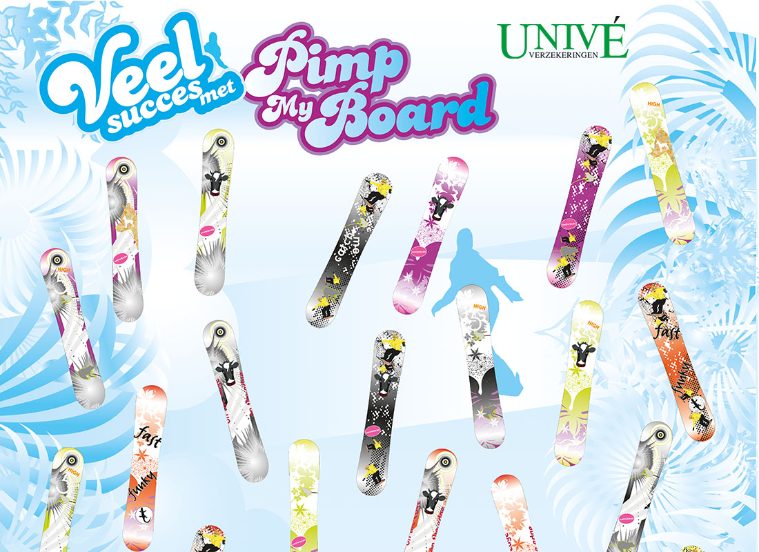 Op je snowboard obstakels vermijden en dit zo lang mogelijk volhouden. Hoe langer de tijd des te meer punten. Vrienden uitnodigen om het spel ook te spelen leverde direct meer punten op. Een polis afsluiten nog meer. Hoofdprijs was een snowboard met je eigen ontwerp.
